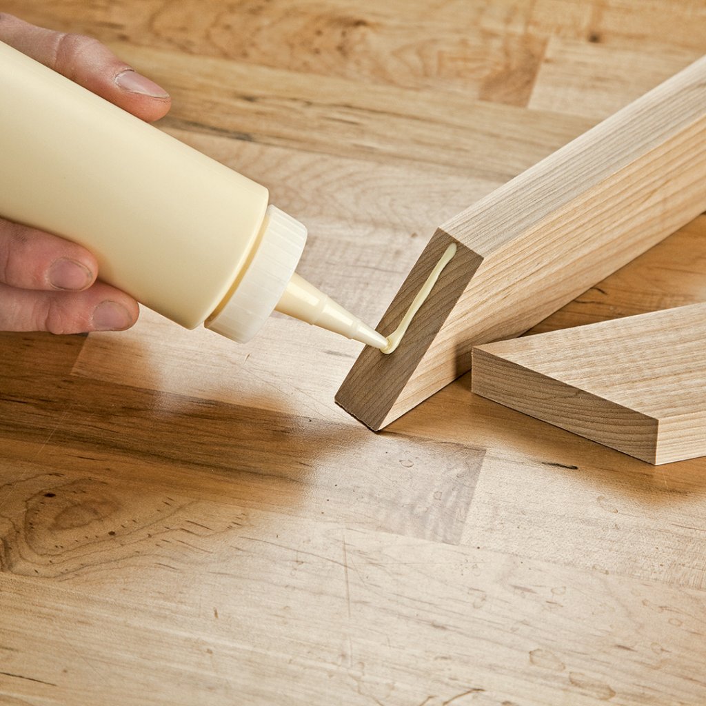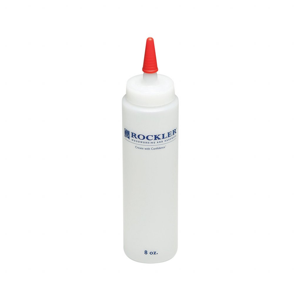 Nanášačka a aplikátor lepidla Rockler. Špičku je možné zrezať a kontrolovať tak množstvo vytekajúceho lepidla. Fľaša zabráni vyschnutiu lepidla a má dlhý a úzky profil, ktorý padne do každej ruky. Fľaša pasuje na ostatné príslušenstvo lepidiel značky Rockler.