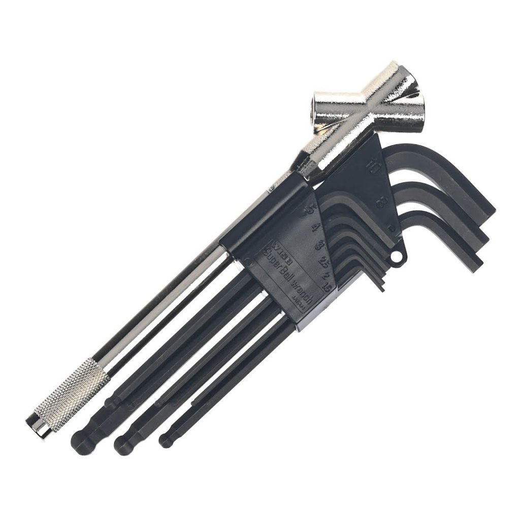 Sada WISE imbusových kľúčov s guľovou hlavou je moderný nástroj navrhnutý pre presnosť a odolnosť. Má unikátny KUROKIN povrch, ktorý je odolný voči opotrebovaniu. Táto sada obsahuje zosilnenú rukoväť, ktorá umožňuje uťahovanie s oboma koncami, šesťhranným aj guľovým, čím zaručuje všestrannosť a efektivitu pri uťahovaní šesťhranných skrutiek. Guľová hlava s patentovaným dizajnom pre rozloženie napätia je menej náchylná na zlomenie, čo ponúka spoľahlivosť pri náročných úlohách. S polodlhým dizajnom je ľahko prenosná a trojitá rukoväť obsahuje päť zasúvacích slotov pre jednoduché nastavenie a uťahovanie z akéhokoľvek uhla. Táto sada obsahuje veľkosti: 1,5, 2, 2,5, 3, 4, 5, 6, 8 a 10 mm.