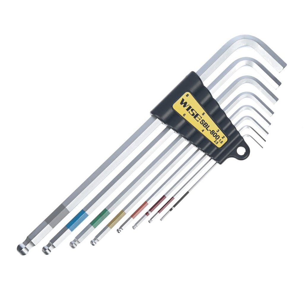 Sada imbusových kľúčov s guľatým koncom značky WISE je navrhnutá pre presnosť a trvanlivosť. Táto súprava je ideálna na uťahovanie imbusových skrutiek, obsahuje tepelne upravenú tvrdosť pre zvýšenú odolnosť proti lámaniu a špeciálne chrómové pokovovanie pre vynikajúcu odolnosť proti opotrebovaniu. Guľatý koniec umožňuje uťahovanie pod uhlom, čo umožňuje prístup do ťažko dostupných miest. Súprava obsahuje veľkosti 1,5, 2, 2,5, 3, 4, 5, 6 a 8 mm, uložené v kompaktnom puzdre.