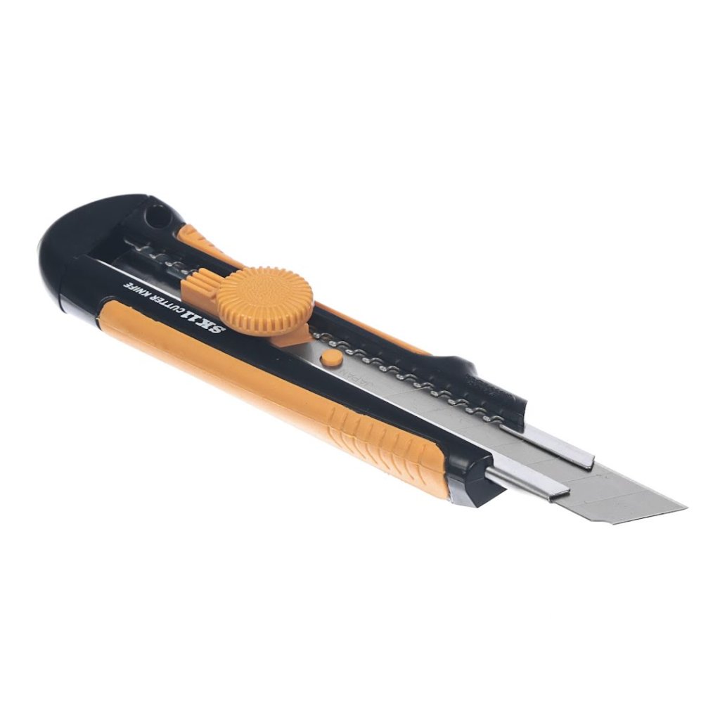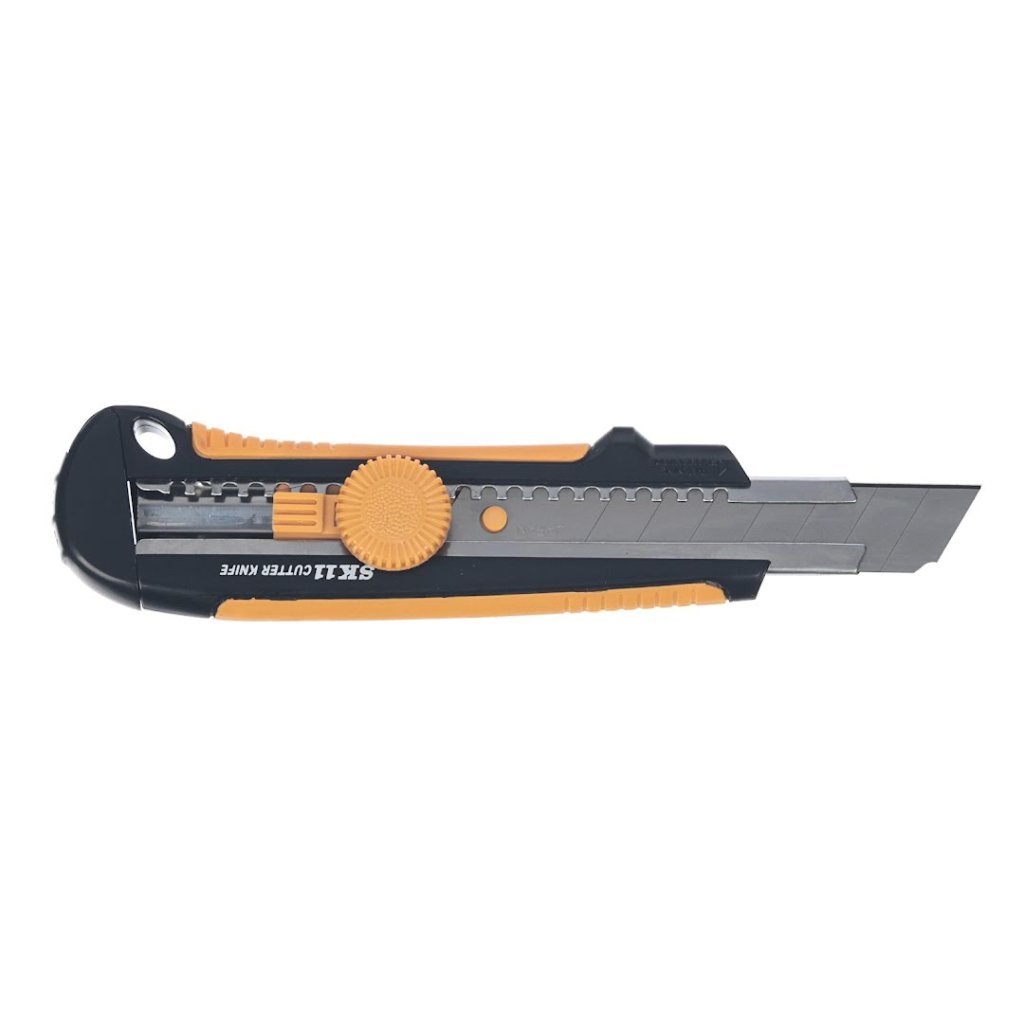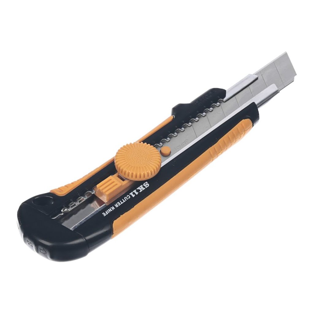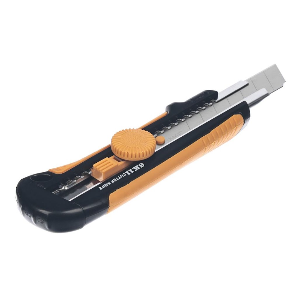 Odlamovací nôž s automatickým zámkom značky SK11 , S-Typ, model SC-3N, je navrhnutý pre presnosť a trvanlivosť. Jeho skrutkový zámok zabezpečuje, že čepeľ je pevne upevnená, čo umožňuje bezpečnú prevádzku. Nôž má držiak z nehrdzavejúcej ocele a gumovú rukoväť, ktorá je ľahko uchopiteľná a protišmyková, ideálna na rezanie kartónu, hrubého papiera a koberca. Je kompatibilný so všetkými čepeľami typu L (šírka 18 mm) a obsahuje vysoko kvalitnú čepeľ vyrobenú v Japonsku.