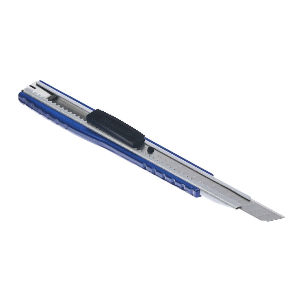 Odlamovací nôž, typ S, model SC-ALSB, od SK11 je precízny nástroj navrhnutý s odolným telesom z liateho hliníka a je vyrobený v Japonsku pre zabezpečenie kvality. Jeho ľahká konštrukcia, váži len 30 g, čím ho robia veľmi ovládateľným pre detailné rezacie úlohy. Vhodný na rezanie papiera, vinylu a kartónu, tento nôž podporuje použitie štandardných vymeniteľných čepelí typu S (9 mm široké), čo umožňuje jednoduchú údržbu a dlhodobú použiteľnosť. Produkt je v žiarivej modrej farbe, zvyšujúcej viditeľnosť pre bezpečnosť.