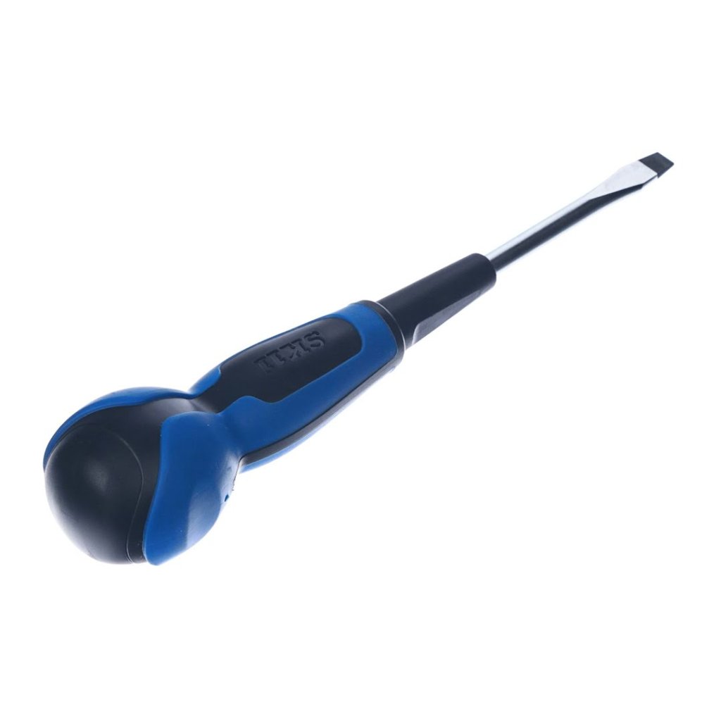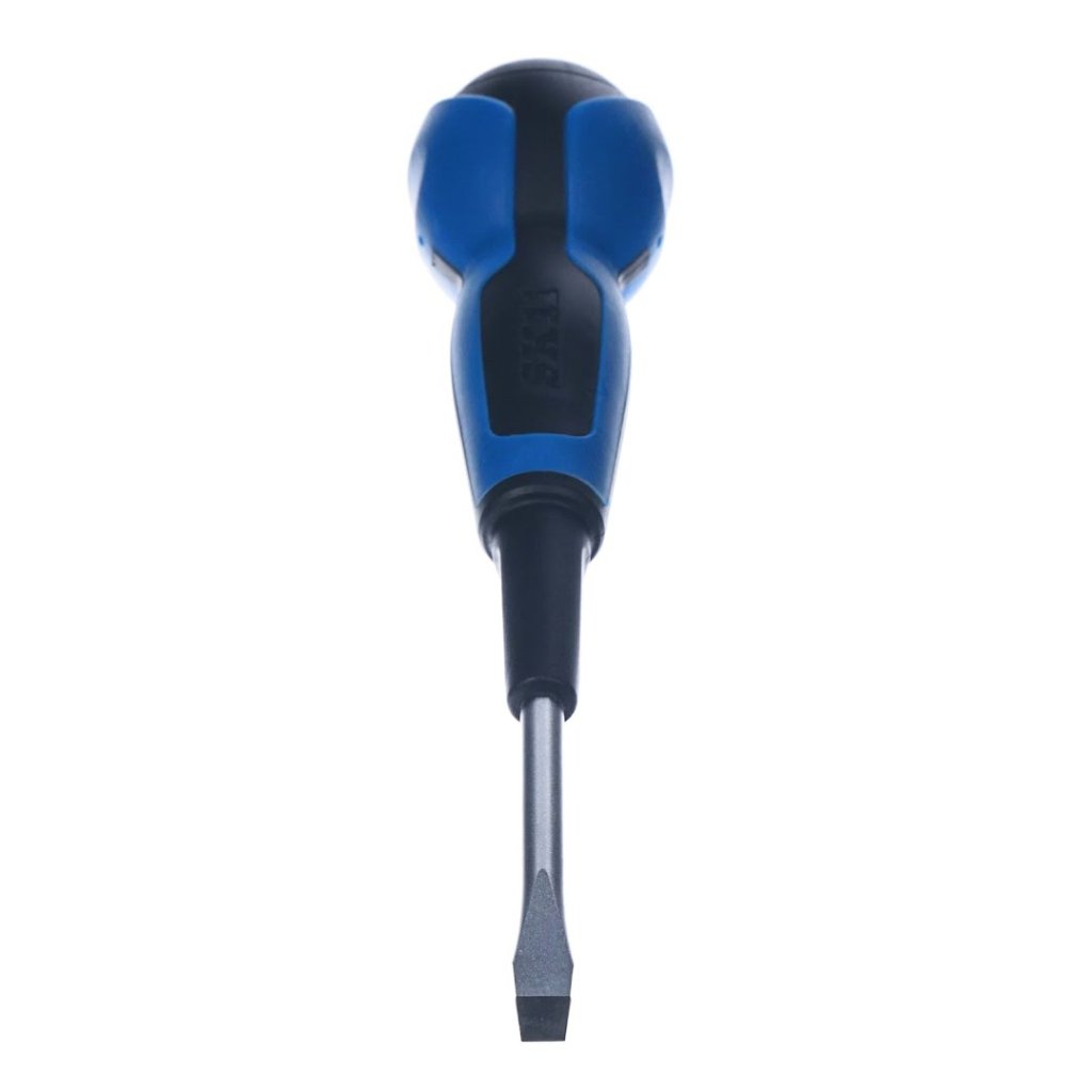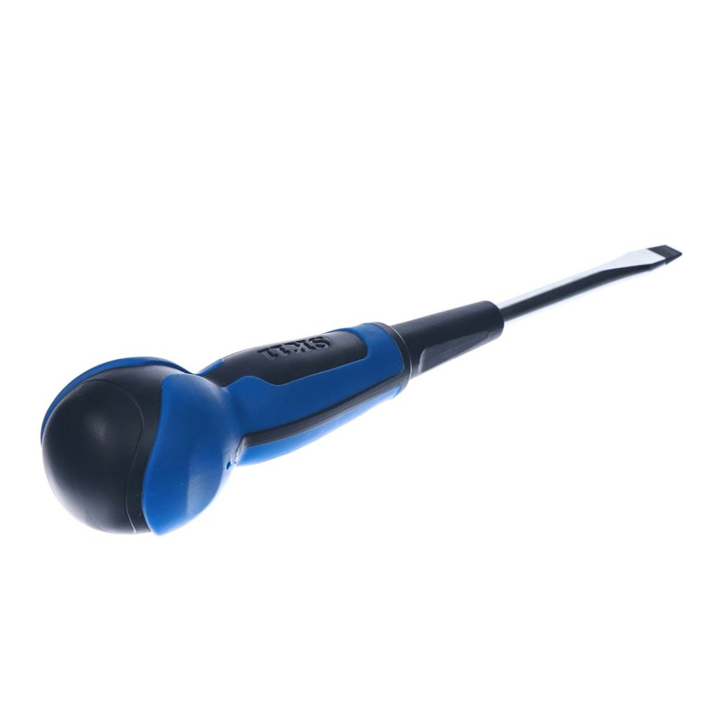 Skrutkovač značky SK11 obsahuje vysoko elastický úchop, ktorý poskytuje pohodlné a protišmykové držanie, čo uľahčuje aplikáciu krútiaceho momentu. Guľatý dizajn zaisťuje efektívny prenos sily tým, že podopiera dlaň. Navyše, magnetická koncovka pomáha zabraňovať pádu skrutiek počas používania. Ideálny na uťahovanie skrutiek, tento nástroj má koncovku SL6 a 100 mm dlhú os a váži 90 g.