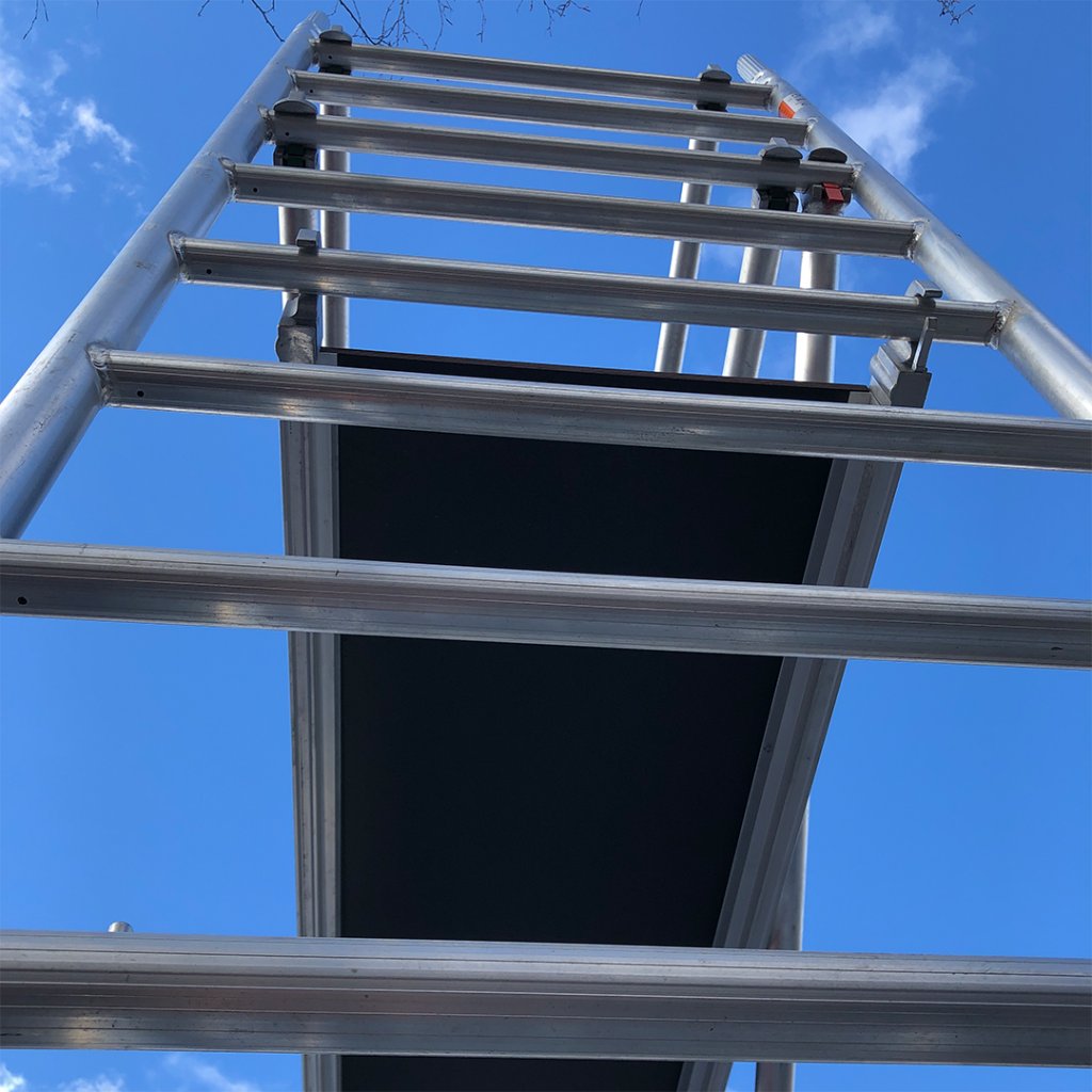 K pojazdnému lešeniu MOBILO s pracovnou výškou 6,6 metrov a vyšším automaticky pridávame vysúvacie teleskopické podpery, ktoré dodatočne zvýšia odolnosť Vašej veže voči prevráteniu. Podpery je možné nezávisle na sebe plynule vysunúť do niekoľkých pozícií, čo oceníte hlavne v prípade, že bude jedna strana lešenia umiestnená priamo pri stene. Pätky na koncoch podpier je navyše možné výškovo nastaviť, pokiaľ sa rozhodnete lešenie umiestniť na nerovný terén.
