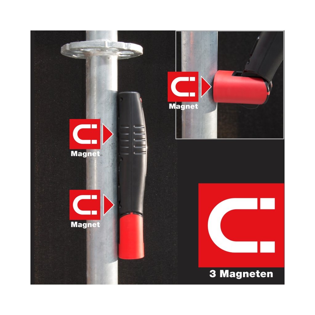 Lampa HLM 7 4 + 3W LED značky Handler je praktickým pomocníkom, ktorý Vám zaistí dobré osvetlenie pracoviska. Ale táto lampa je šikovné riešenie aj pre zabezpečenie osvetlenia pri použití na chatách, chalupách, záhradách, v garážach a podobne. Lampa je dostatočne robustná a preto má dlhú životnosť. Lampou možno vďaka kĺbu pohybovať v uhle 180 stupňov. Táto pracovné svietidlo má 3 silné magnety pre uchytenie na kove (jeden v nohe a dva v zadnej časti) a háčiky na zavesenie svietidla. Svietidlo je vyrobené z veľmi odolného plastu a je vhodné aj pre vonkajšie použitie. Sila svetla je: u hlavného pracovného svetla: 300 lm, 6500 K, u druhého svetla: 120 lm, 6500 K. Svietidlo funguje na batérie: 3.7V 2200mAh, Li-ion batérie, alebo na nabíjačku: USB 110V - 240V AC / DC 5V 1A. Ku svietidlu je 1,5m nabíjací kábel micro USB. Hlavné svetlo vydrží svietiť na batériu cca 3 hod., Vedľajšie svetlo cca 7 hod. Doba kompletného nabíjania je cca 4 hod. Rozmery svietidla sú 26 x 5,1 x 4 cm a hmotnosť 345 g.