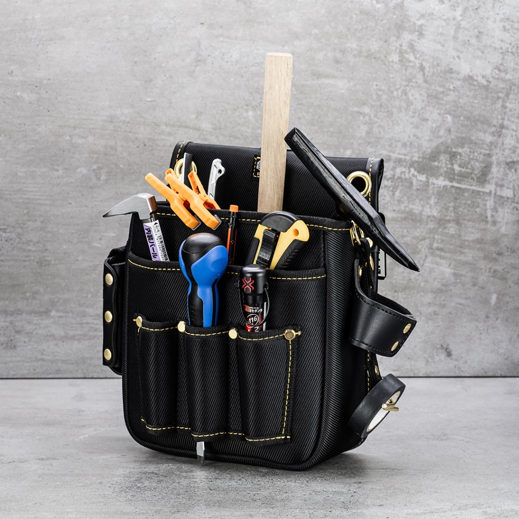 Pevná taška pre remeselníkov od značky RYUMA, ktorú možno ľahko pripevniť na opasok. Taška je dodávaná s malou karabínou a slučkou na remienok.