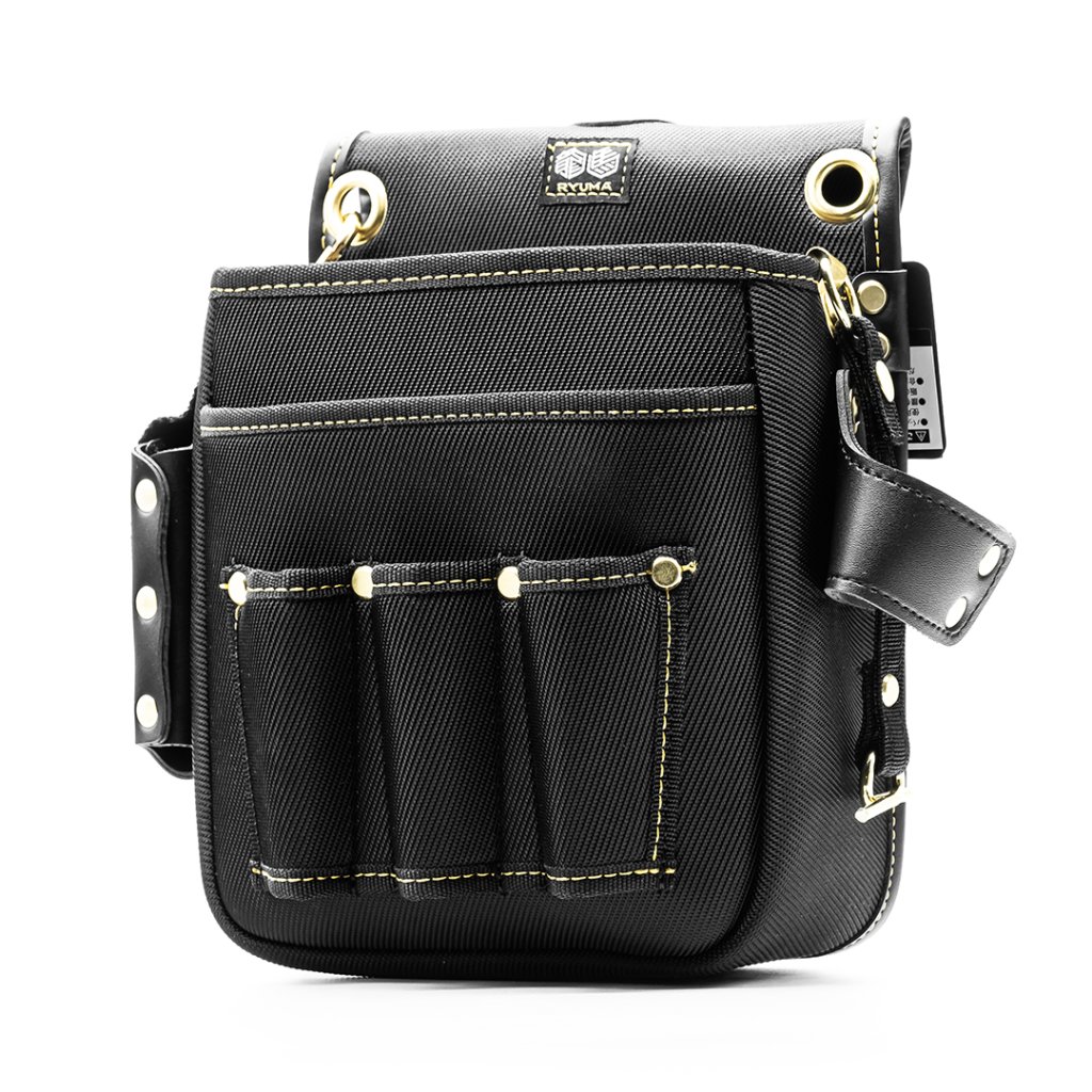 Vrecko pre remeselníkov RYUMA v ikonickej zlatisto-čiernej farbe. Taška je vyrobená z pevného nylonového materiálu. S falošnou koženou slučkou a bočným puzdrom.