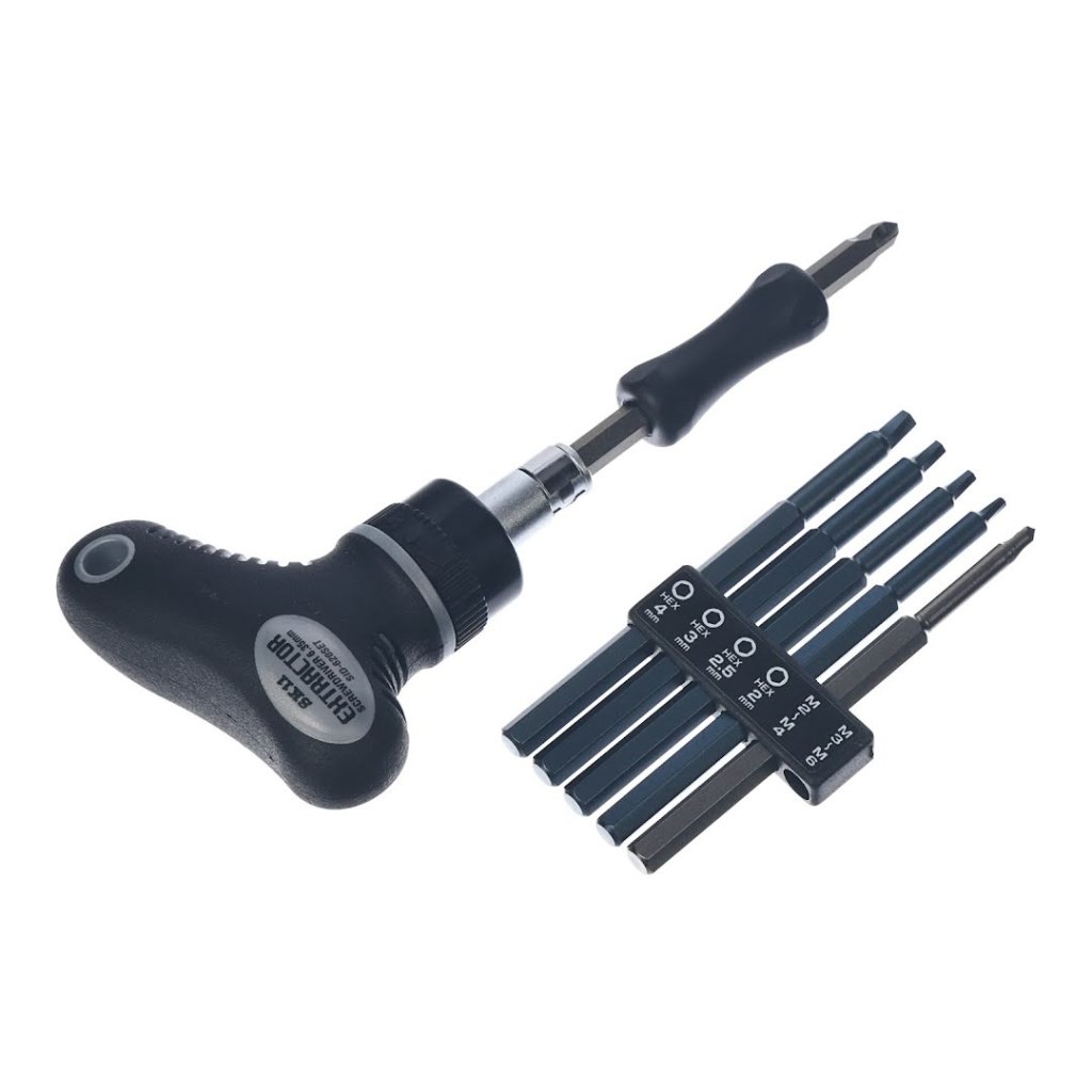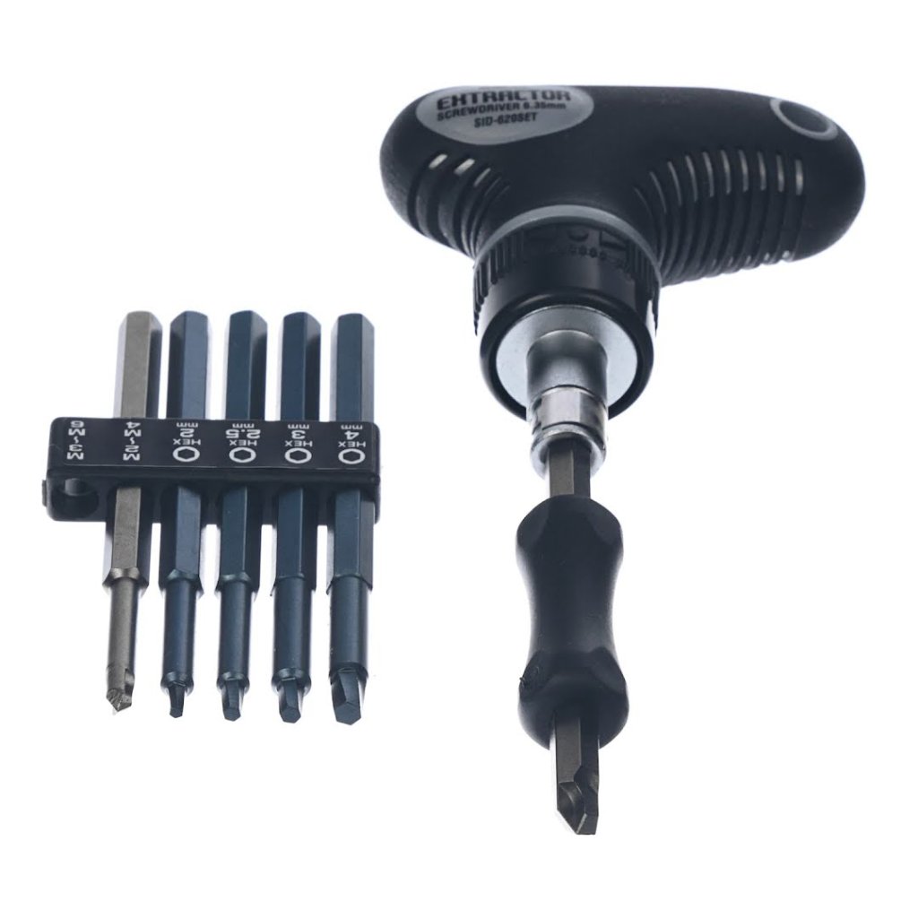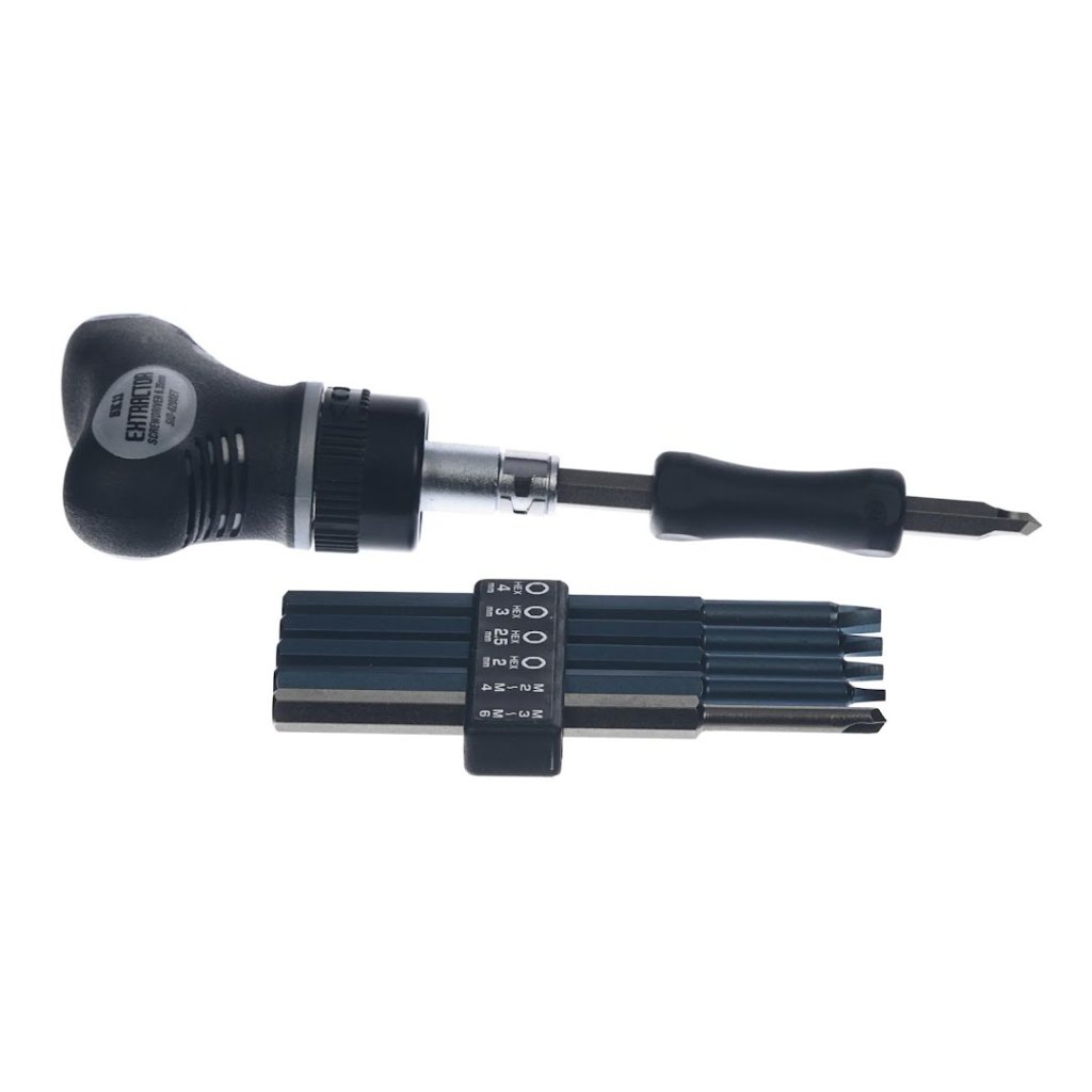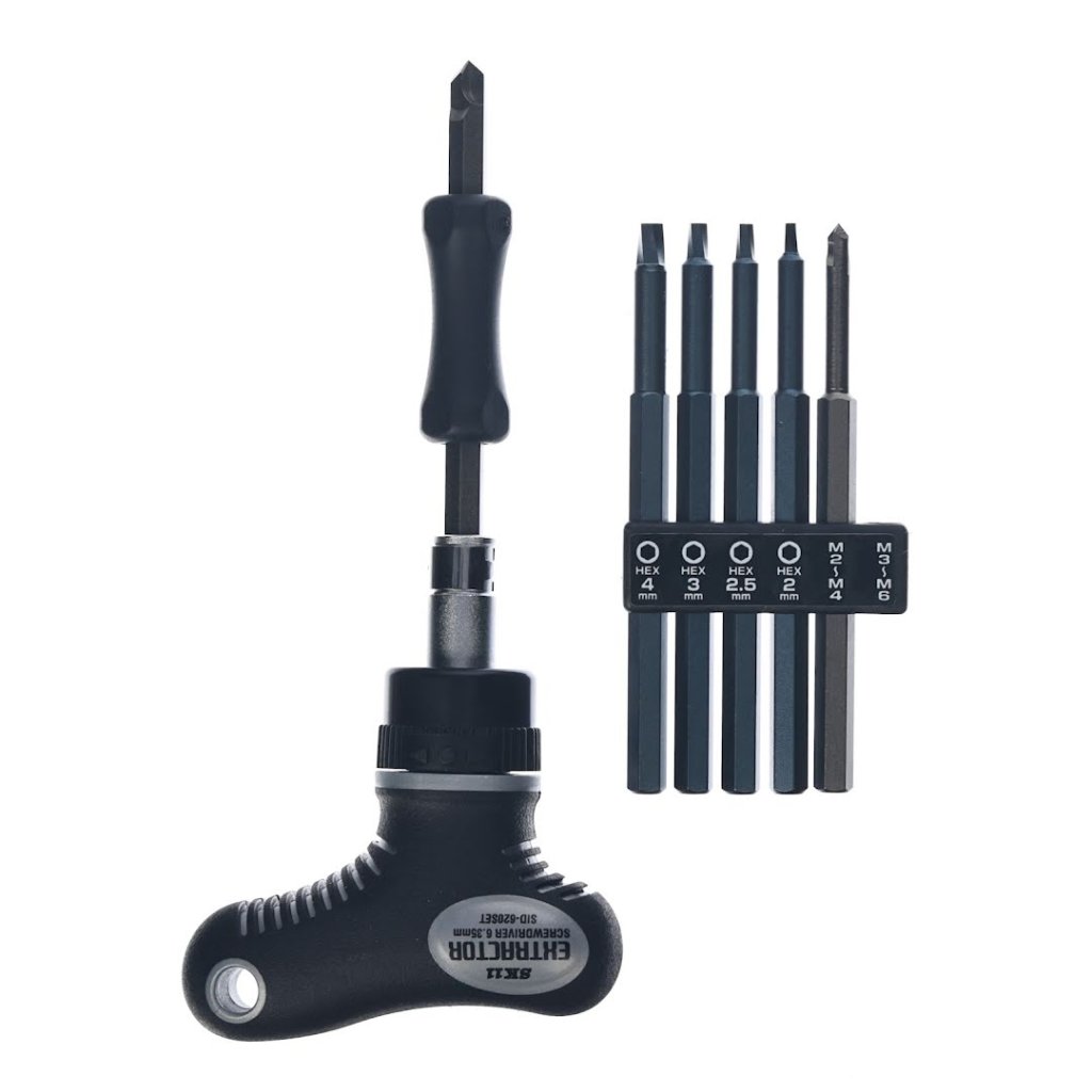 Sada držiaku a vyťahovacích bitov od SK11 je navrhnutá na jednoduché odstránenie poškodených a poškriabaných skrutiek. S račňovým mechanizmom umožňuje nepretržitú prevádzku bez námahy. Táto univerzálna sada podporuje ploché skrutky (M2-M6) a šesťhranné skrutky (2-4 mm). Obsahuje špeciálne bity na odstránenie poškodených krížových skrutiek a šesťhranných skrutiek, čo z nej robí nevyhnutný nástroj pre každého nadšenca do domácich prác.