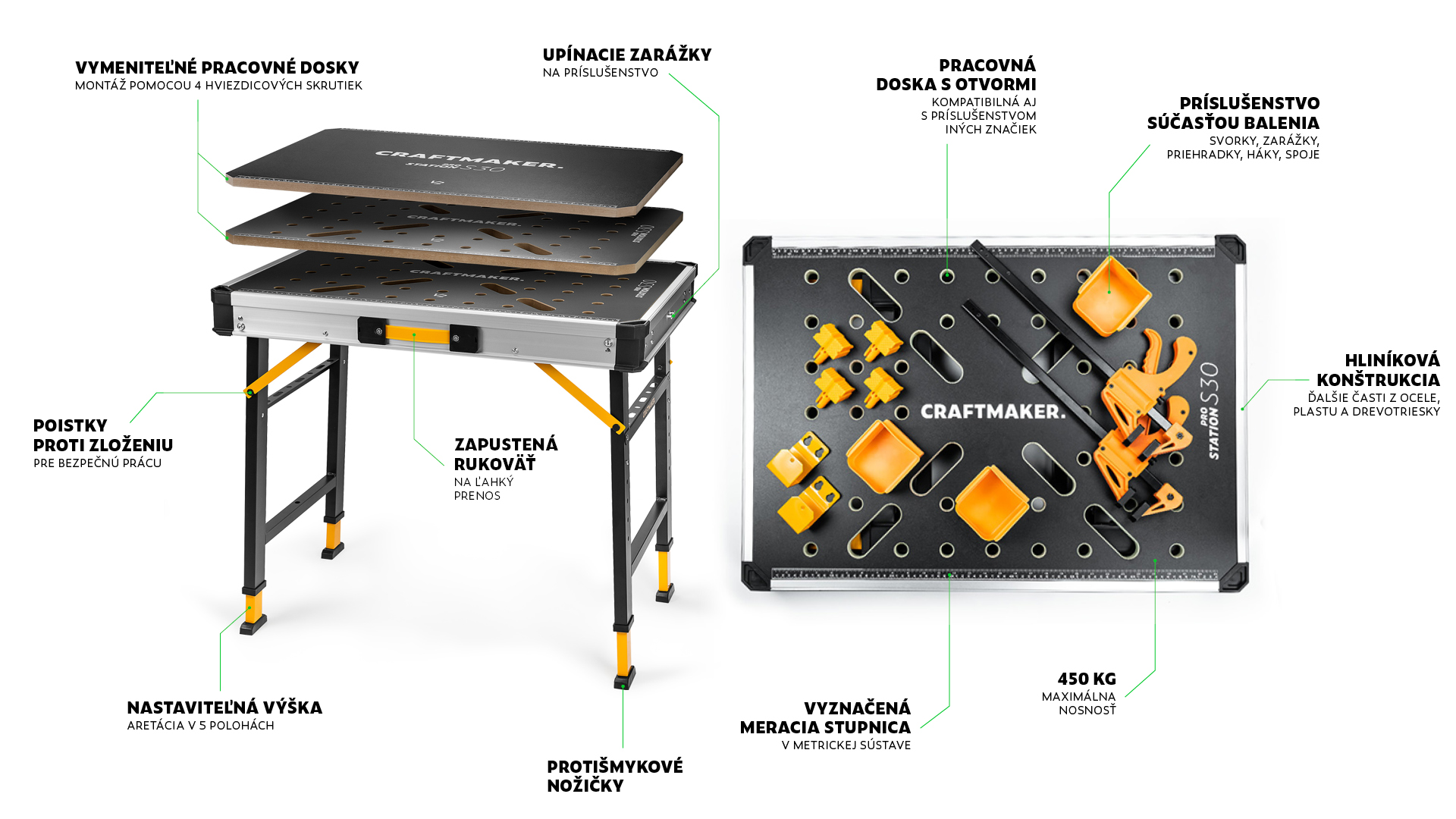 Vlastnosti pracovného stolu CRAFTMAKER