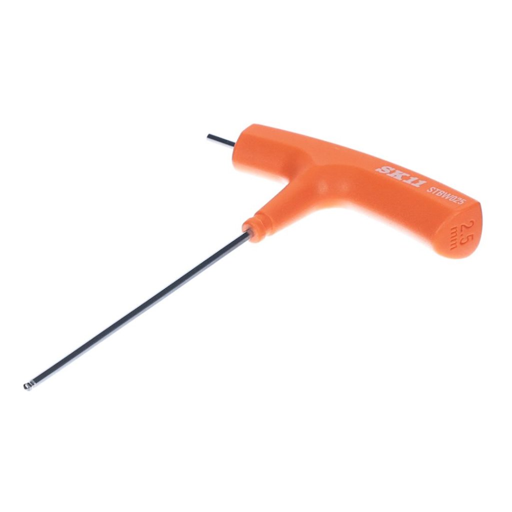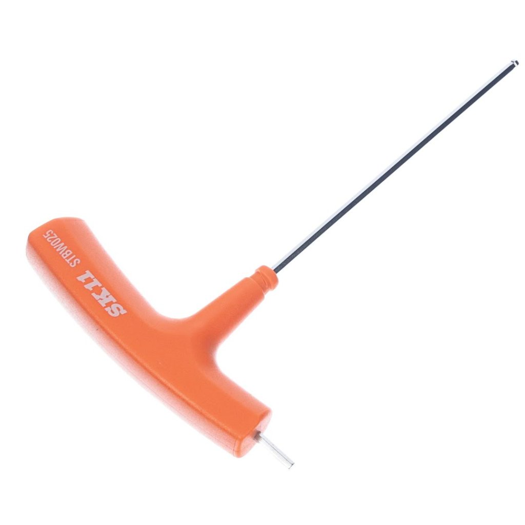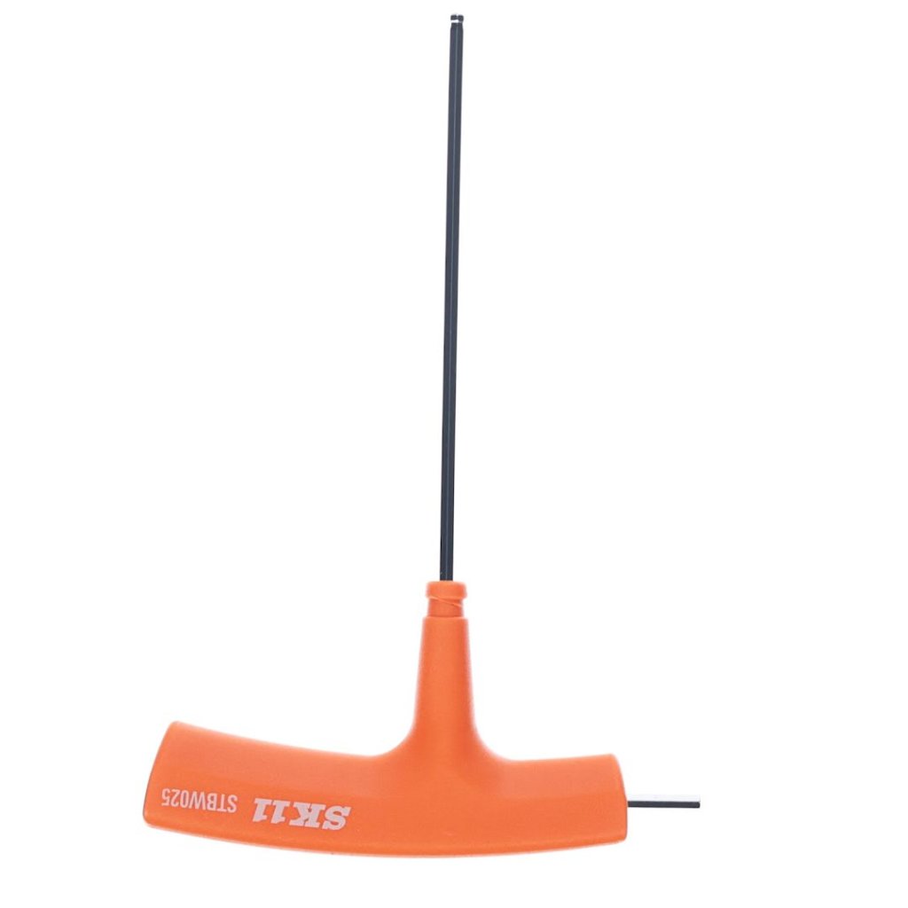 Skrutkovač od SK11 je navrhnutý na uťahovanie a povoľovanie šesťhranných skrutiek a matíc. Jeho 2,5 mm guľová špička umožňuje vloženie pod uhlom až 25 stupňov, čo ho robí ideálnym pre úzke priestory a obmedzené oblasti. Nástroj má chromovanú, odolnú povrchovú úpravu a T-rukoväť pre lepší úchop a kontrolu.